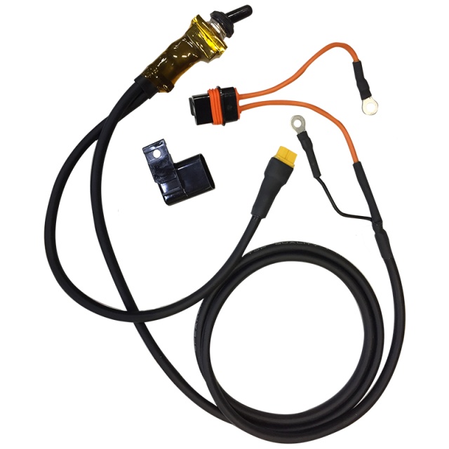 Strömbrytaren klarar 20A. Fyra lager krympslang med lim på strömbrytaren gör att den klarar tuffa tag.