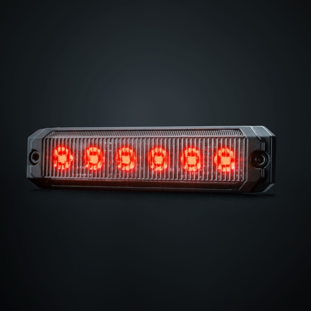 Dark Knight SM6 rött positionsljus med ultratunn lins, 6 LED, låg strömförbrukning, IP69K, ECE-godkänd och enkel att installera.