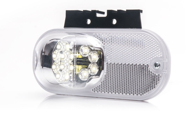 Vitt positionsljus med reflex och LED-teknik för ökad synlighet och säkerhet.