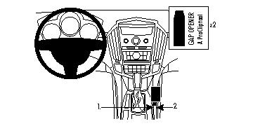 1. Använd den medsända våtservetten till att rengöra området där ProClip-fästet ska monteras. På grund av att springan i konsolens sidovägg är väldigt trång, sätts springöppnarna på plats i två steg: