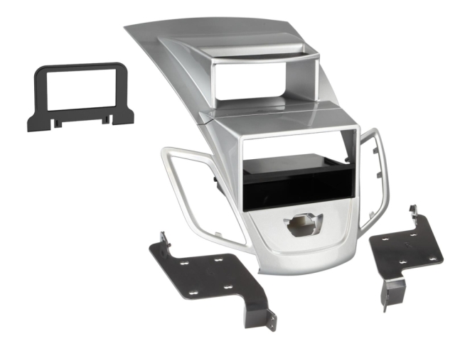 ACV 281114-21-2 är en 2-DIN monteringsram med prylfack, designad för Ford Fiesta med silverfärgad display.