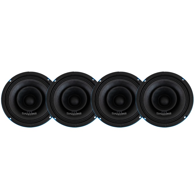 4-pack med 6.5" mellan-/fullregister högtalare med en unik design från ljudexperterna på HammerTech!