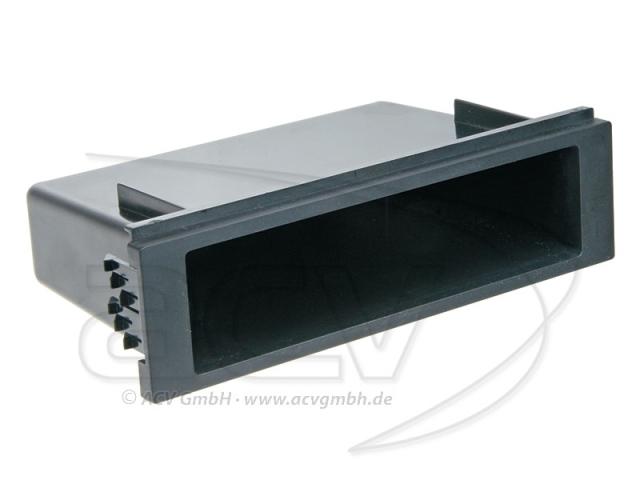 Prylfack för att montera under stereon när du vill monter en 1-DIN maskin i ett 2-DIN-fack. Mått 186x50mm plus fläns 3mm, djup 100mm. För montering ihop med plåtkassett 185 mm x 103 mm x 103 mm.