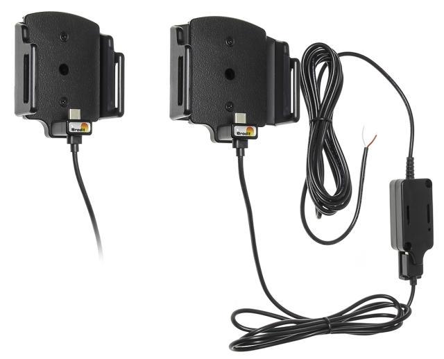 Brodit 527840 - Aktiv hållare för fast installation. Med en aktiv hållare som ansluts innan för instrumentbrädan får du en snygg montering utan lösa kablar hängandes över instrumentbrädan! Trafiksäkert, praktiskt och bekvämt! Denna hållare kommer med en USB Typ C-kontakt och passar endast med enheter med en likadan laddingång.