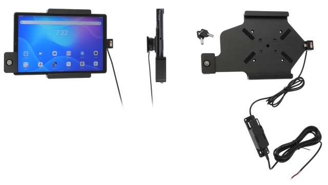 Brodit 736271 - Hållare med nyckel-lås. Denna hållare används när du vill ha din surfplatta fastlåst och ändå lättåtkomlig. Perfekt för butiken eller på mässan - överallt där du vill använda din surfplatta utan att den enkelt kan flyttas. För att ta bort den ur hållaren krävs en nyckel eller en viss mängd av våld. Till hållaren ingår lås och två nycklar.