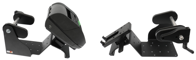 Detta skrivarfäste erbjuder ett enkelt och säkert sätt att montera din skrivare och inkluderar en extern rulle för stora rullar med etiketter. När den kombineras med en skrivarmonteringsplatta ger denna plattform ett flexibelt fäste som använder de kontinuerliga matarrullarna för utskriftsplattformar.