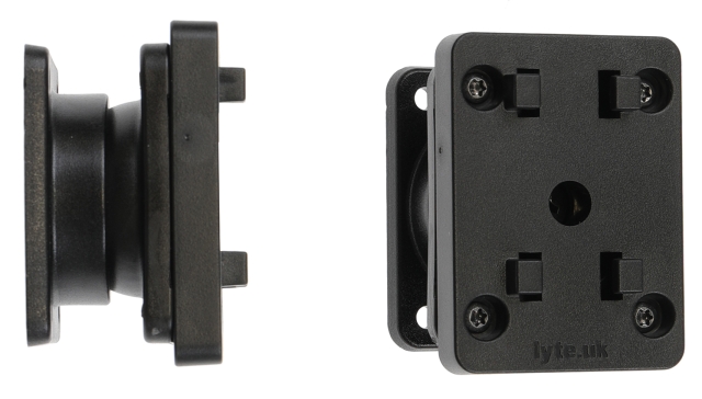 Monteringsplatta med en stor kraftig kulled för montering av tyngre utrustning såsom större skärmar, laptops med mera. Används för att kunna vrida och vinkla den monterade enheten, ger en flexibel men samtidigt stadig montering. Basplatta: 42x50 mm.
