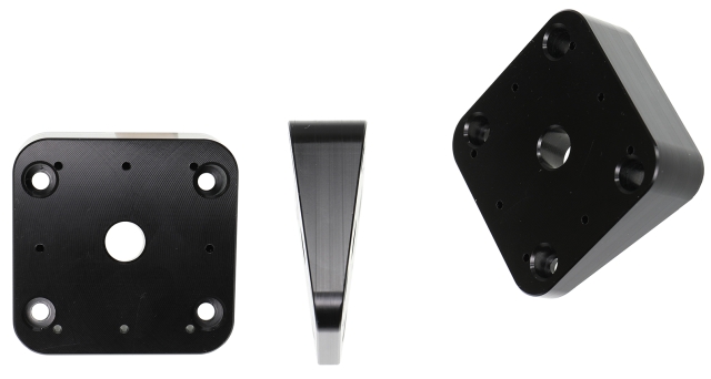 Vinklad monteringsplatta. Lägger till extra 15° vinkel till din monteringsyta. Kan placeras mellan ett fäste och en hållare. Med vertikala AMPS hål + 8 hål + centrerat hål. Tillverkad av högkvalitativ Acetal plast. Färg: svart. Tillverkad i Sverige.