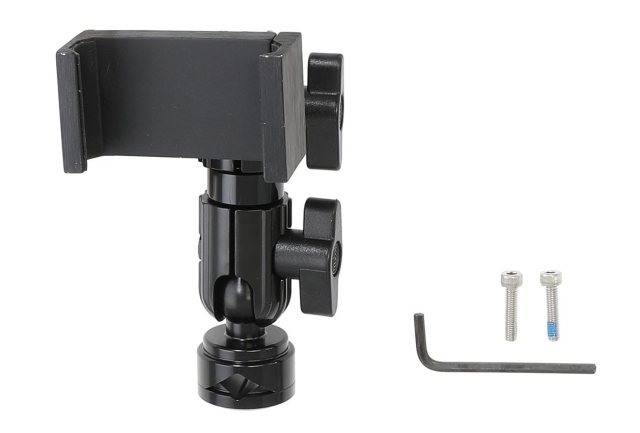 Stabilt motorcykelfäste med mobilhållare för montering på sidospegelns stag. Fästet är ledat på två ställen så du kan enkelt justera vinkeln och låsa i önskat läge med vingmutter. Piedestaldelen på fästet är 90 mm lång och kan vridas 360° . Totallängd 101 mm. Passar motorcykelstyren med spegelstag med diameter 8-14 mm. Kan även användas på andra runda rör med diameter 8-14 mm.
