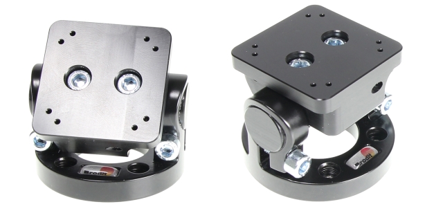 Brodit 215742 - Piedestalfäste för kabelgenomföring. Topp med ställbar monteringsplatta, tippbar 180°. Monteringsplatta: 50x50 mm. 2xAMPS-hål. 4 skruv för montering av hållare ingår. Svart.