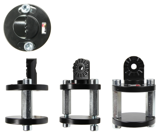 Brodit 215784 - Piedestalfäste för truck. Truckfäste. Integrerad fot/toppdel. Passar stag från 5mm upp till 130mm i tjocklek. Bredd mellan stagen: 36mm. Skruvset i olika längder, muttrar, brickor och insexnycklar bifogas.