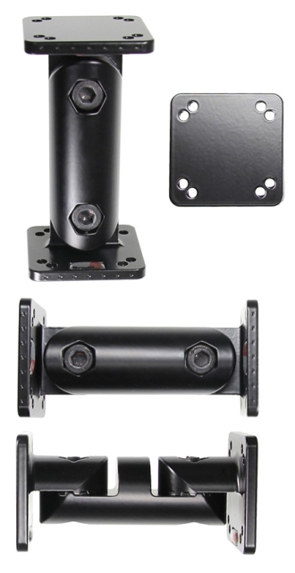 Kan vinklas i sidled i steg om 24°, upp till max 192° (8 olika lägen). Monteringsplattan är 50x50 mm och har dubbla AMPS-hål.