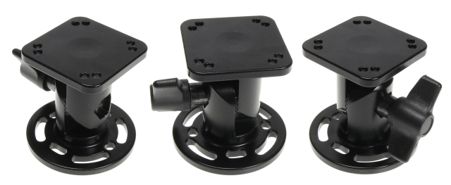 Kan vinklas i sidled i steg om 11,25°, upp till max 180° (16 olika lägen). Den runda foten har en diameter på 64 mm och multipla hål för radiell justering. Den fyrkantiga toppen är 50x50 mm och har två uppsättningar AMPS-hål. Detta PM-fäste har även en vingmutter i den tandade leden för att man snabbt och enkelt ska kunna ändra vinkeln på inställningen.