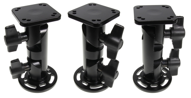 Kan vinklas i sidled i steg om 11,25°, upp till max 180° (16 olika lägen). Den runda foten har en diameter på 64 mm och multipla hål för radiell justering. Den fyrkantiga toppen är 50x50 mm och har två uppsättningar AMPS-hål. Detta PM-fäste har även en vingmutter i varje tandad led för att man snabbt och enkelt ska kunna ändra vinkeln på inställningen.