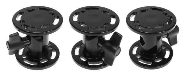 Kan vinklas i sidled i steg om 11,25°, upp till max 180° (16 olika lägen). Den runda monteringsplattan har en diameter på 64 mm och multipla hål för radiell justering. Detta PM-fäste har även en vingmutter i varje tandad led för att man snabbt och enkelt ska kunna ändra vinkeln på inställningen.