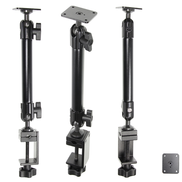 Ett standard Piedestalfäste med litet klämfäste, för en stabil installation av din enhet i alla fordon och på alla släta ytor och rör/stag. Lätt att ställa in i alla vinklar och positioner tack vare kulleder som kan vinklas 210° och vridas 360°. AMPS hål, kompatibel med alla Brodits hållare med kulled. Färg: svart. Stång tillverkad av aluminium, vingmuttrar tillverkade av plast.